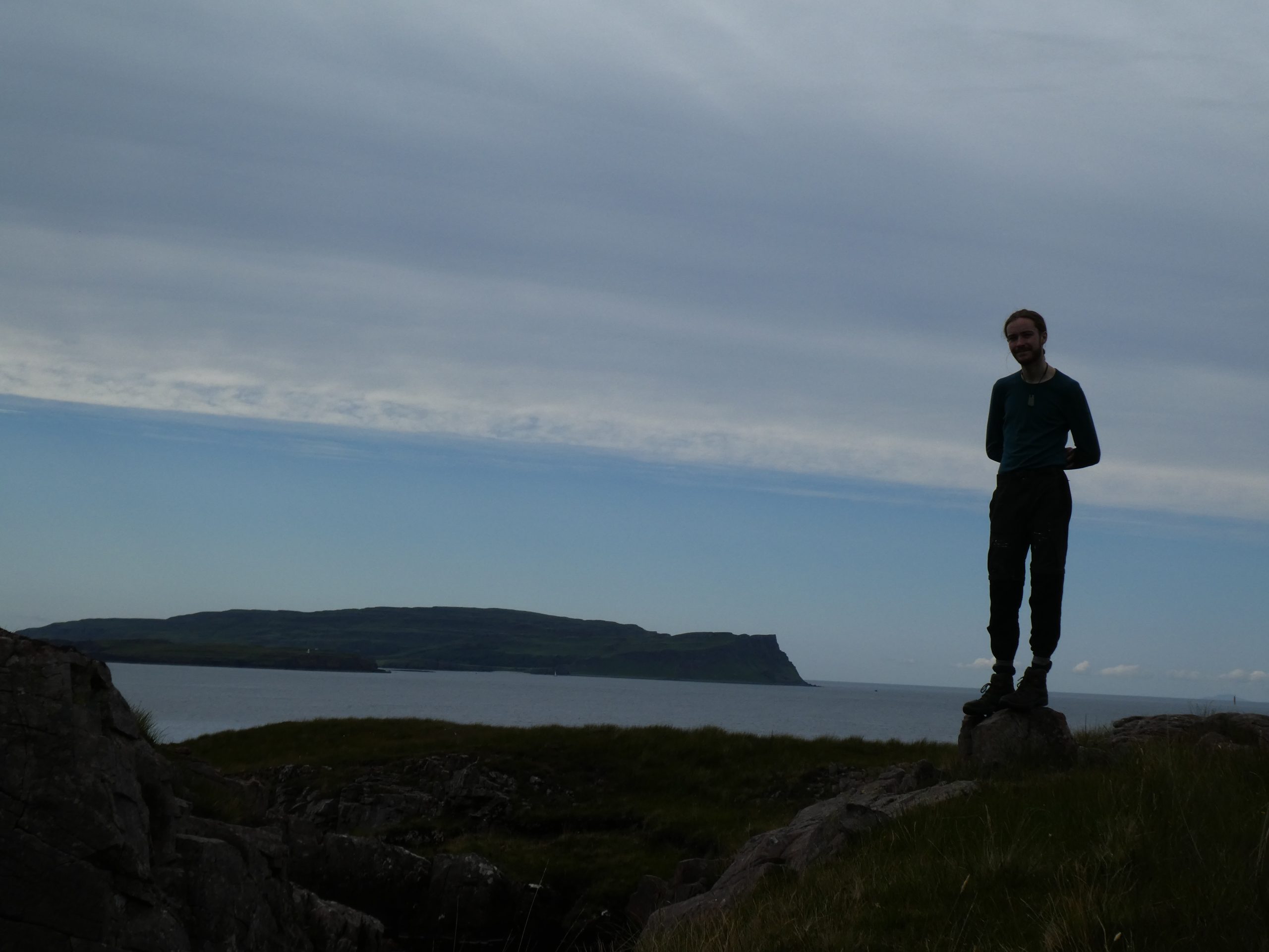 Man standing on a rock with Canna behind